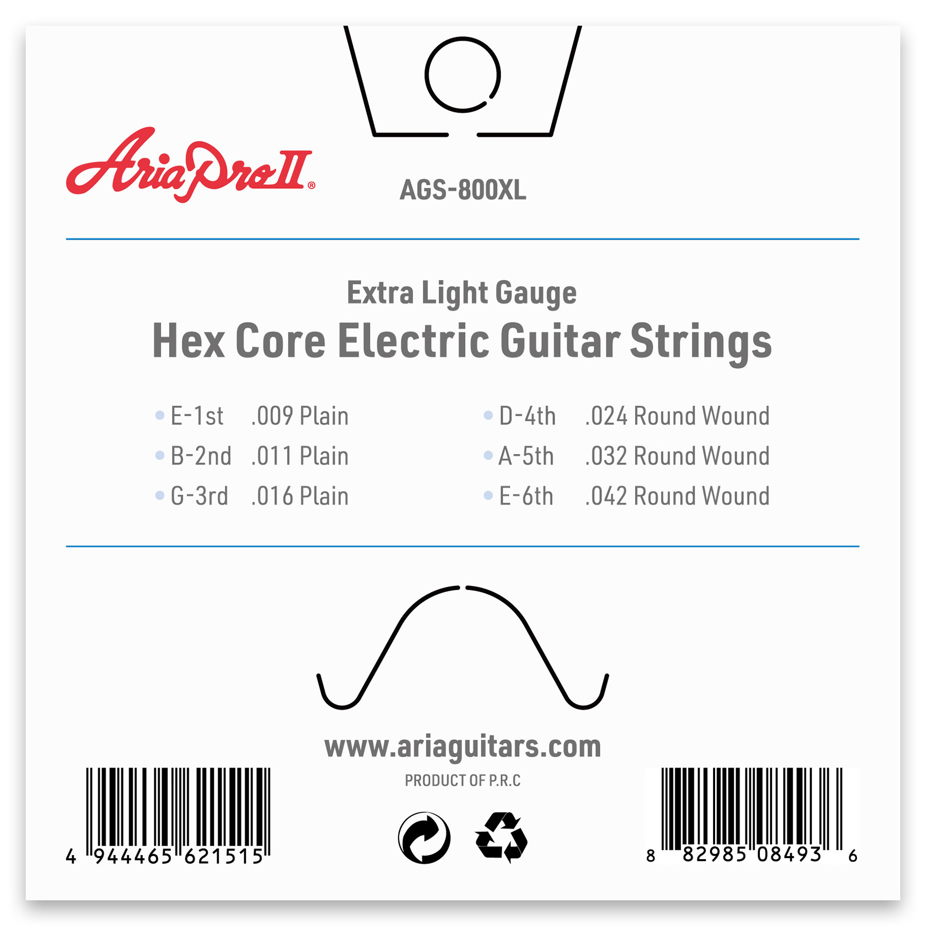 Aria Pro II electric guitar strings are made from nickel plated steel wire wrapped around a hexagonal core.